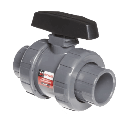 Hayward series TBZ " Z-Ball " true union ball valves are offered in PVC and CPVC in 1/2" to 6" sizes and are for use in sodium hypochlorite applications. 1/2" to 2" sizes are either socket & threaded or flanged. 2-1/2" to 4" sizes are either socket, threaded or flanged. 6" size is only offered with flanged connection and is a 4" valve venturied into a 6" valve. Series TBZ has FPM O-rings and PTFE reversible/reusable seats. Options for TBZ series valves include: lockouts, 2" square operating nut, stem extensions, pneumatic and electric actuators and a spring return handle.